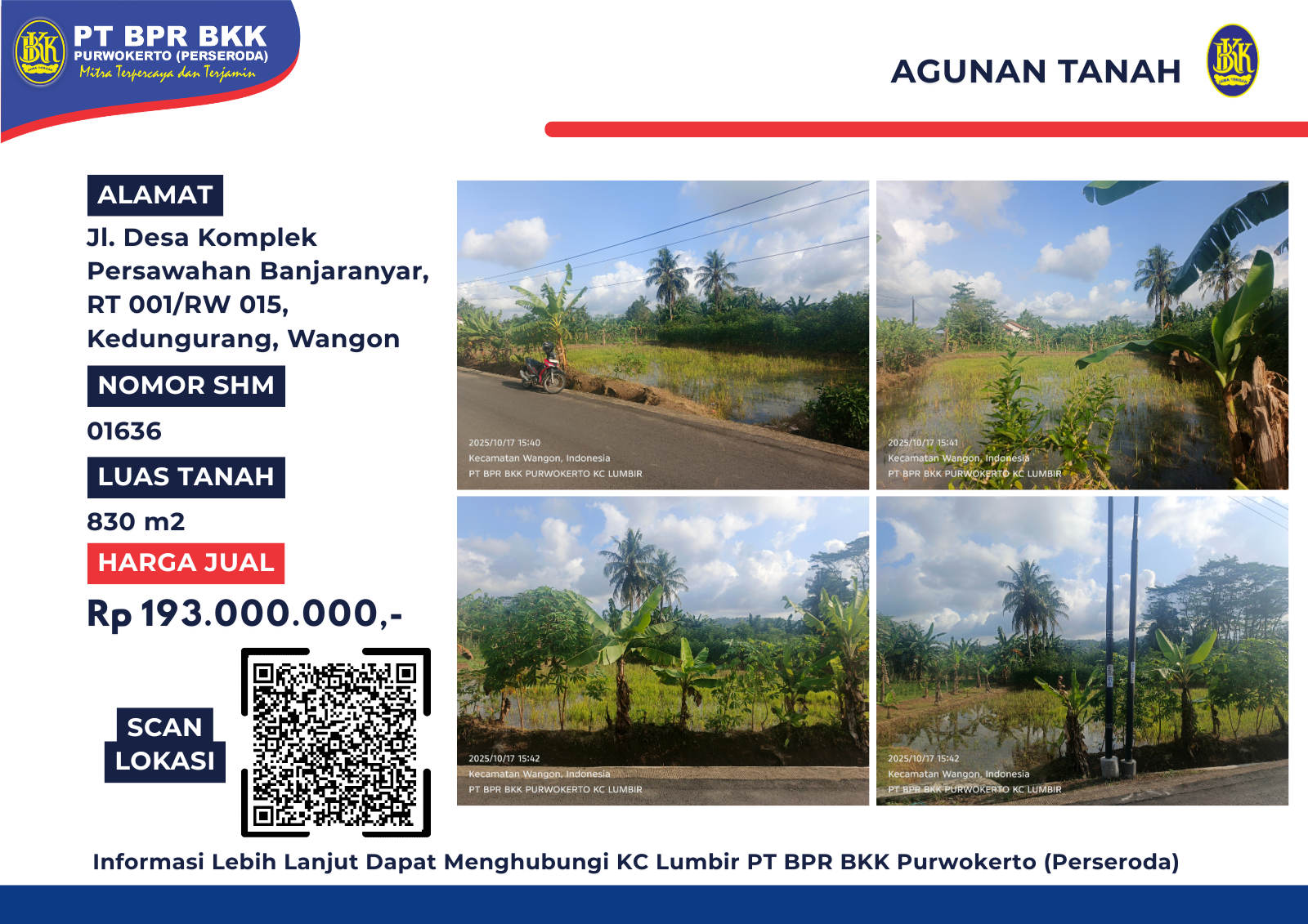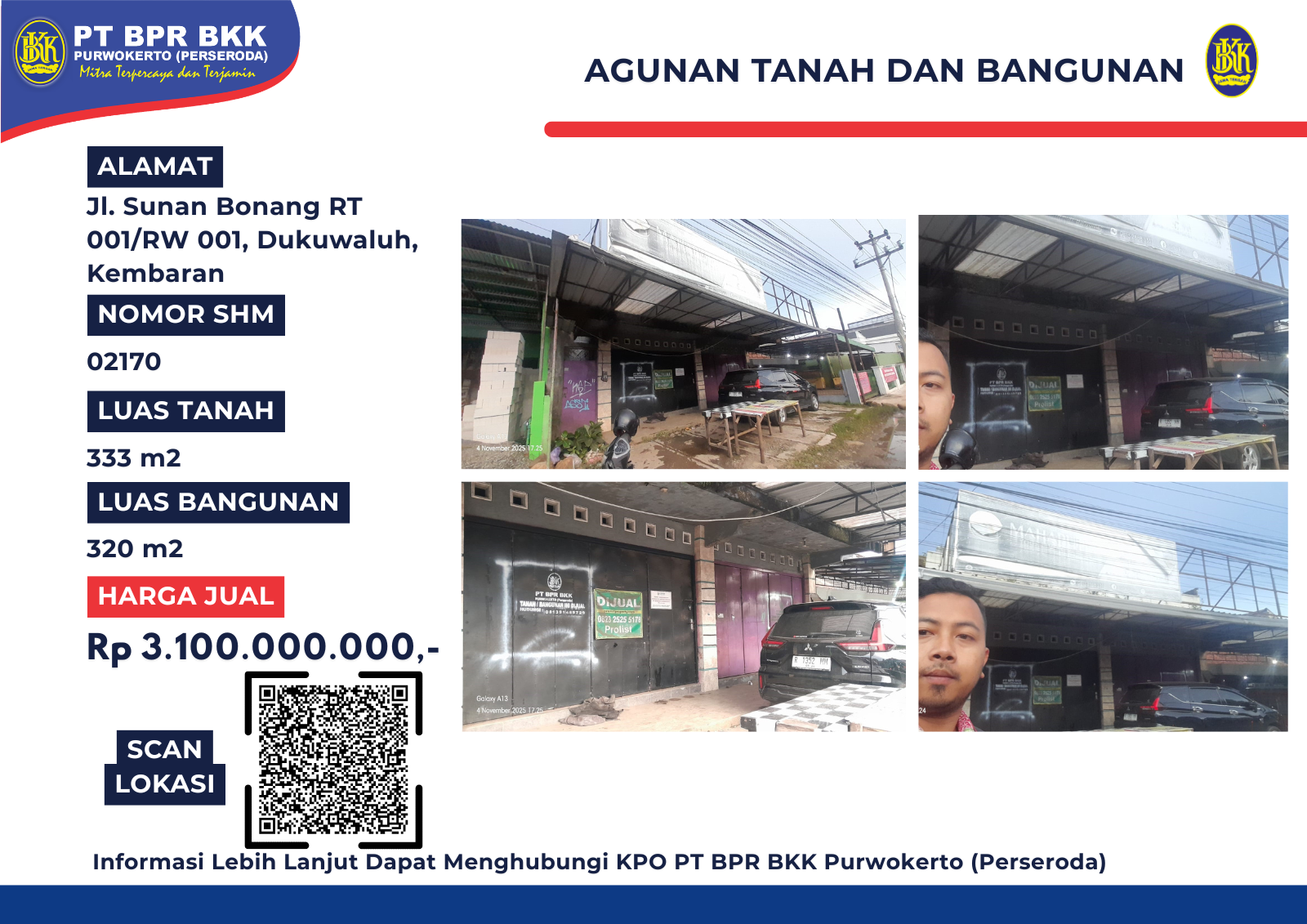 Info lebih lanjut hubungi Bidang Asset Manajemen Resiko (AMU) PT BPR BKK Purwokerto (Perseroda).